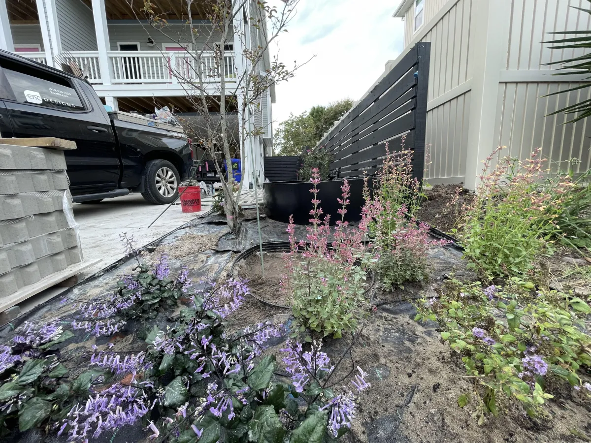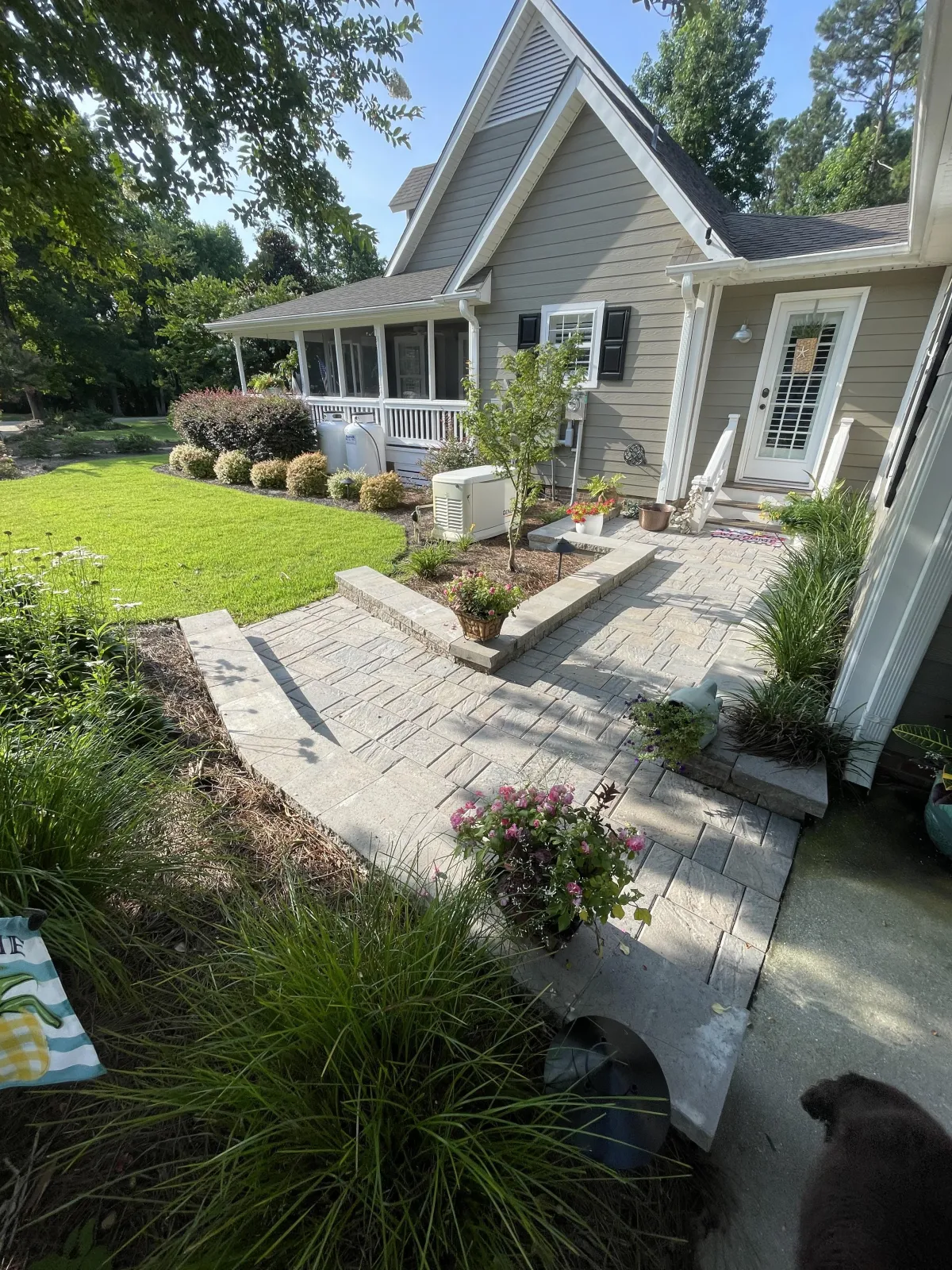 We select plants and materials that thrive in the Raleigh-Durham humidity and clay soil.