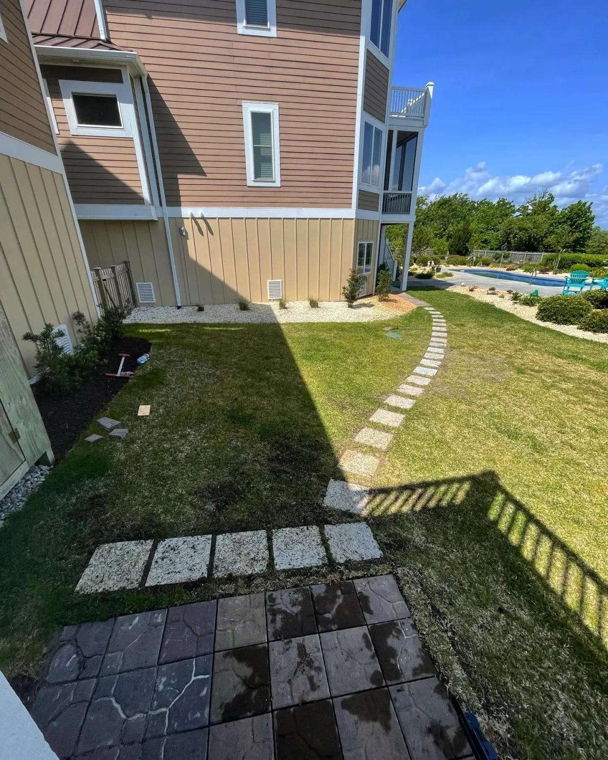 Custom Paver Patios: Precision-laid stone for dining and lounging.